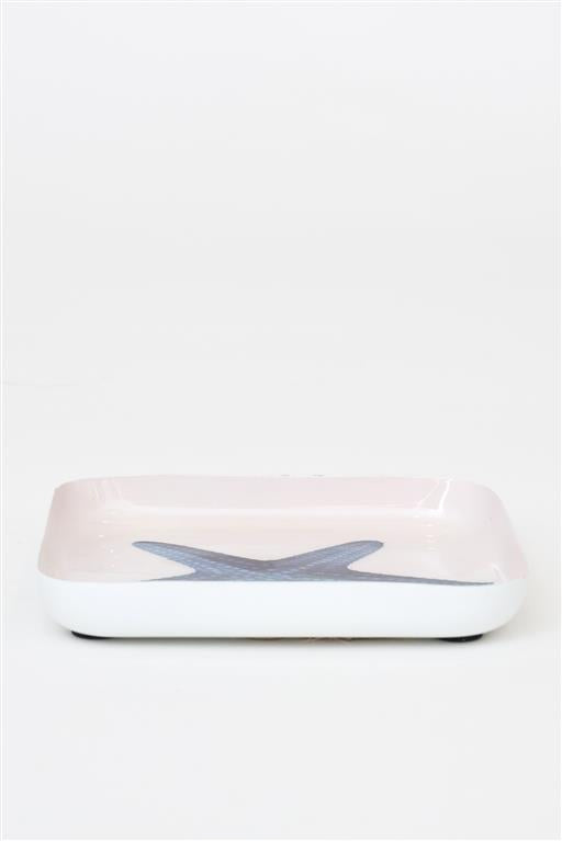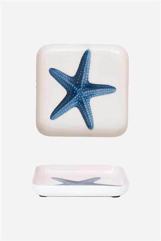 This small square metal tray, finished in crisp white enamel, is beautifully detailed with a blue starfish motif — a lovely touch for seaside-inspired interiors