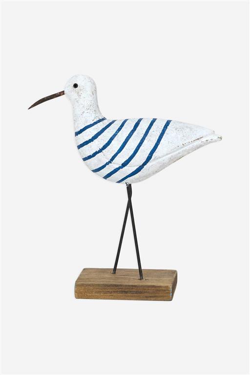 This striking handmade wooden bird evokes the relaxed charm of seaside aesthetics with the clean white and blue stripes. Ideal for displaying on shelves, desks, or side tables.