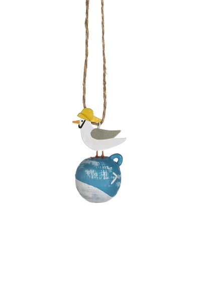 These seagulls on buoys are a colourful addition to your coastal decoration . Comes in blue or green.